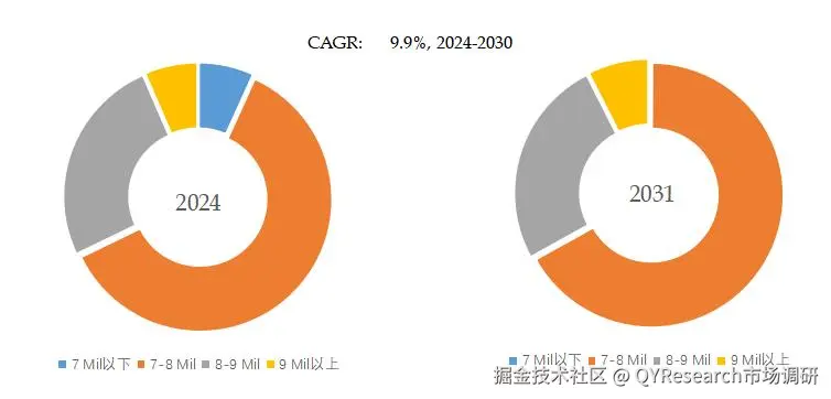 就产品类型而言,目前7-8 Mil是最主要的细分产品,占据大约61.0%的份额。