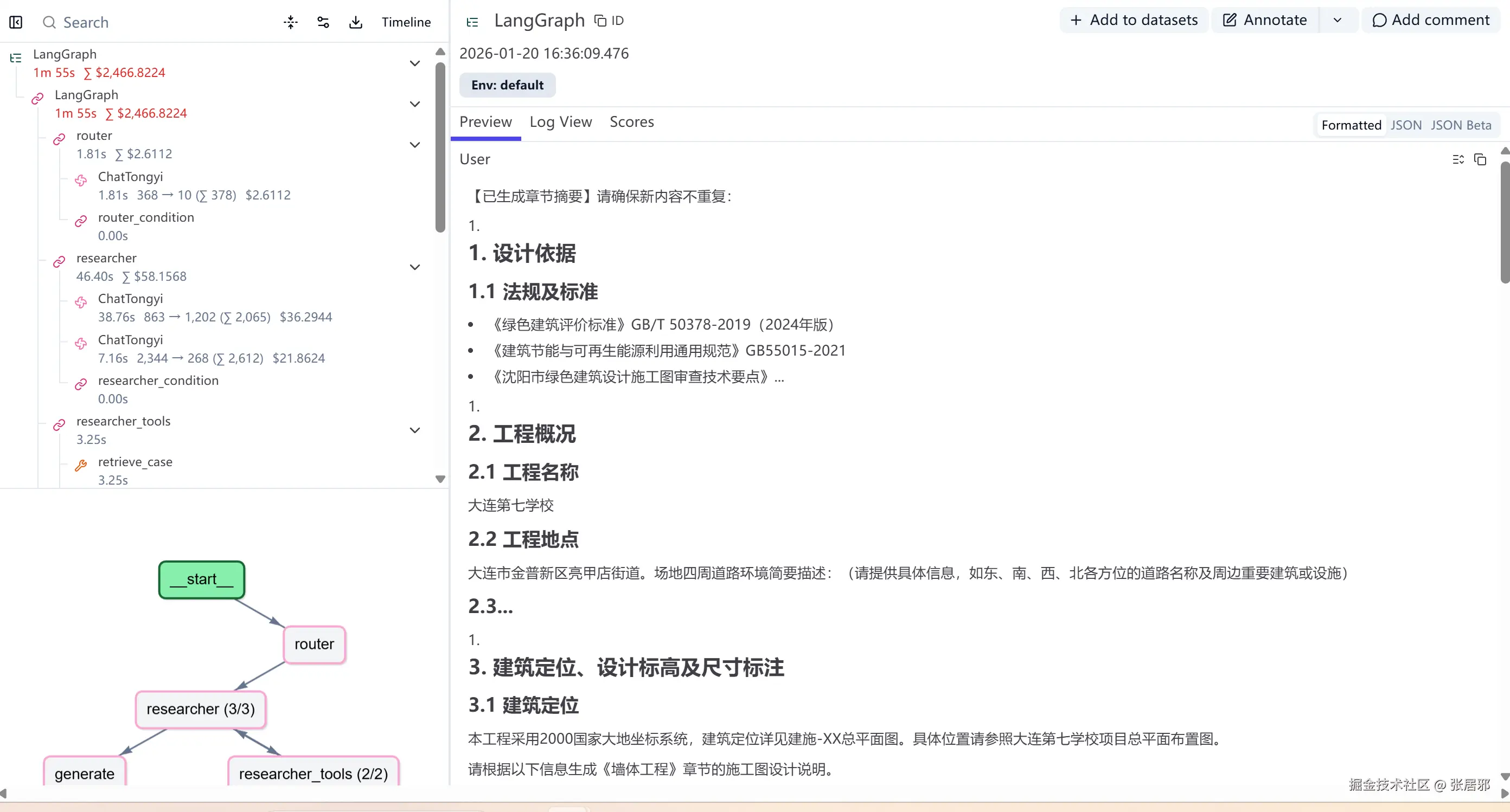 业务场景:生成完整的施工图设计说明,需要信息收集、文档生成、合规审核的完整流程。