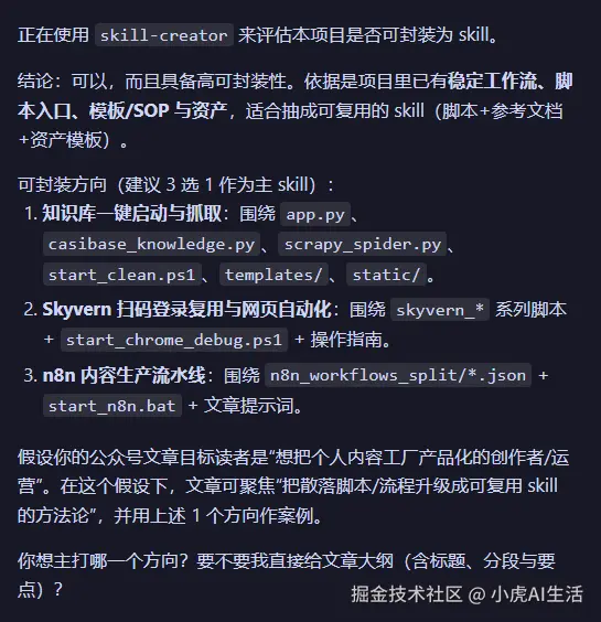 - 问 AI:“能不能变 Skill?”