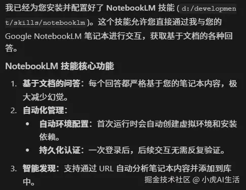 同时我抱着“试一试”的心态,我先装了一个叫 notebooklm-skill 的插件。