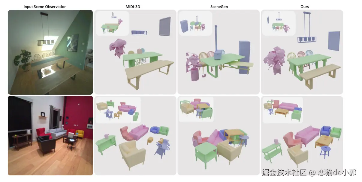 那么从前面的概念也可以看出来,ShapeR 的特点是:它不是直接重建一个整体 NeRF / TSDF 场景块,而是先检测场景中的多个对象 ,然后对每个对象单独重建 mesh ,最后再组装成场景 。