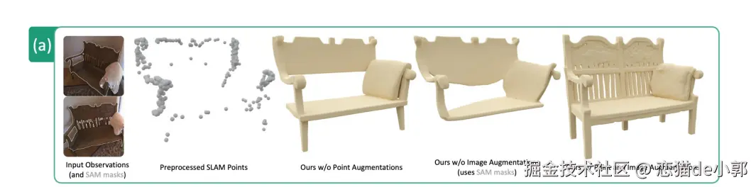 ShapeR 是 Object-Centric(以物体为中心)的,它需要这些 Mask 来告诉生成模型:“只准重建这个茶壶,不要把后面的墙壁和下面的桌子也算进去了”