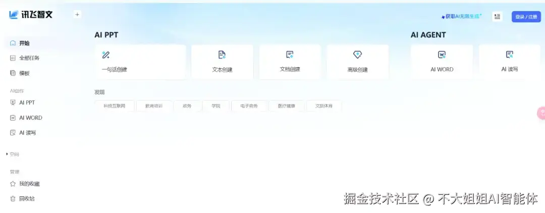 做 PPT 的核心痛点不是画图,而是逻辑。讯飞智文能根据你的长文稿或音视频直接生成 PPT 大纲,并自动匹配专业的排版设计。这种 结构化排版能力,让打工人能把精力放在汇报内容本身。