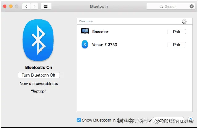 在Mac上,前往“系统偏好设置”>“蓝牙”打开蓝牙;