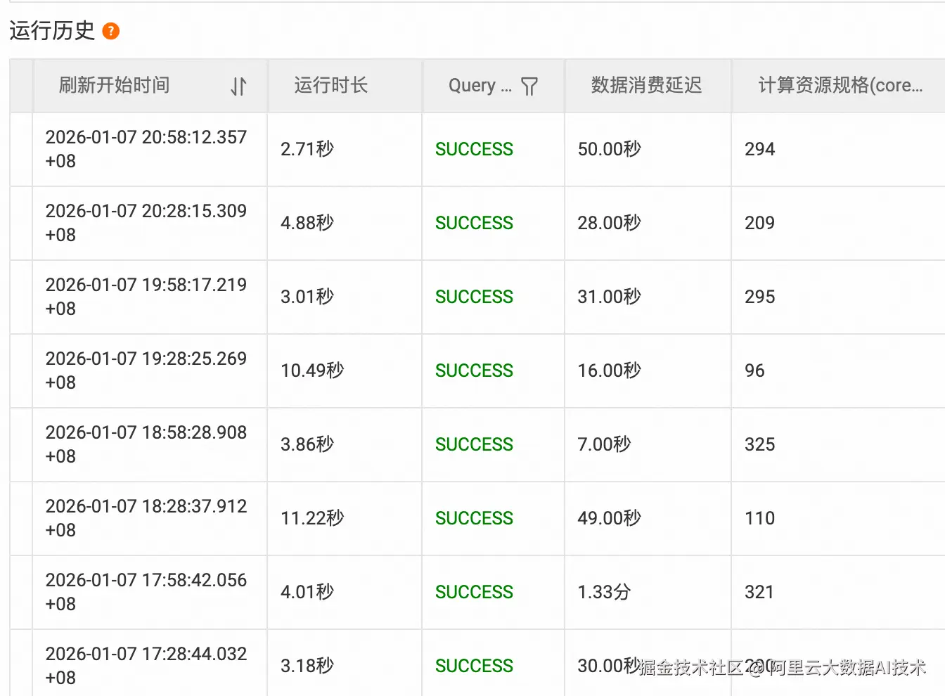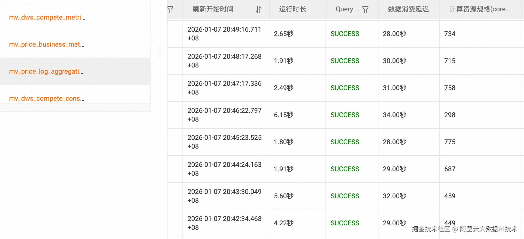 增量刷新策略: 采用动态表增量刷新机制,设置分钟级刷新间隔,实现近实时数据更新,并分钟级保存历史数据。