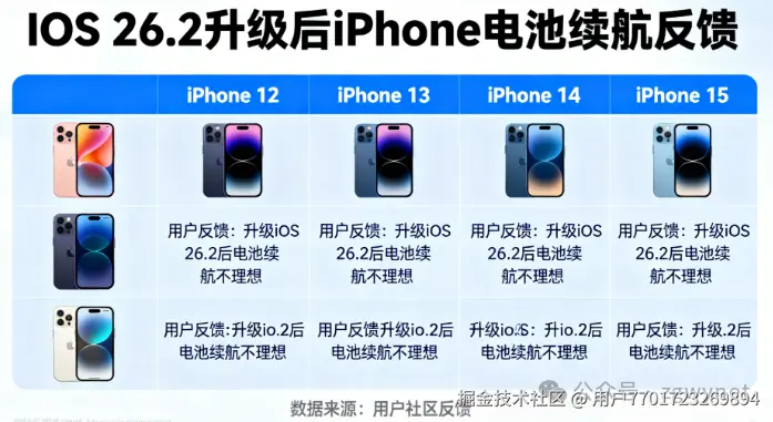 许多iPhone 12、13、14甚至部分iPhone 15用户反映,自从升级到iOS 26.2后,电池续航就变得相当不理想。苹果公司对此问题其实早有解释。