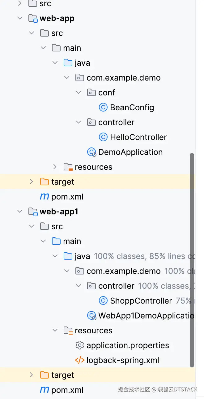 且web-app和web-app1两个进程起来时要通过-javaagent方式将agent的探针无入侵的方式接入应用中