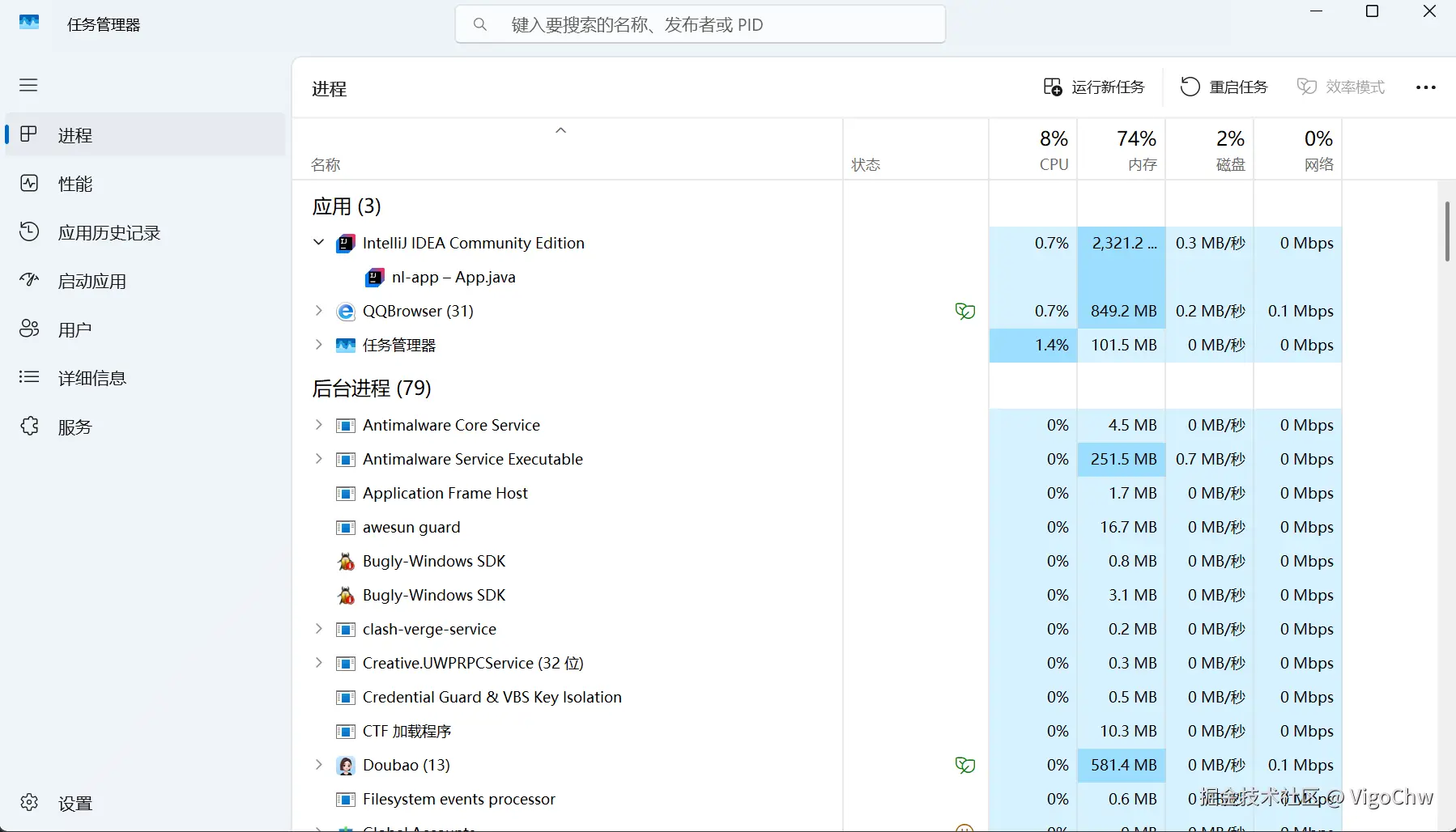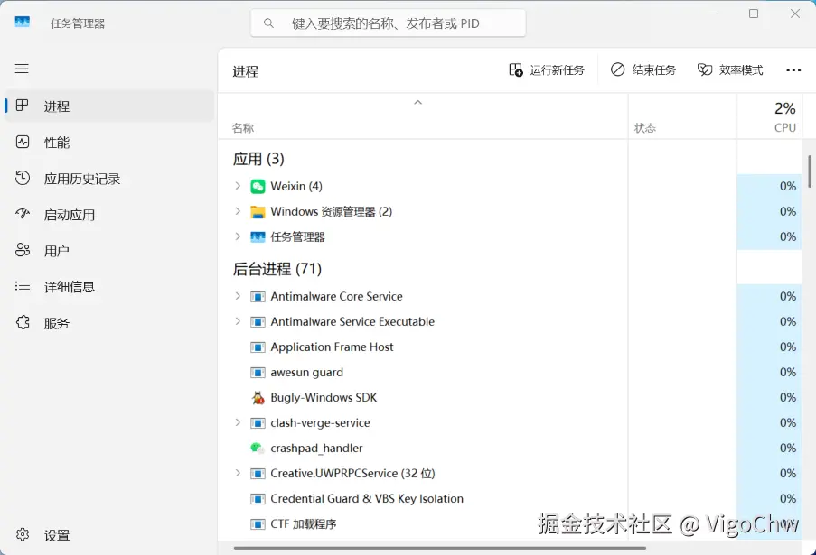 在计算机的任务管理器中,分别为后台进程和应用程序进程,应用程序进程也是我们所说的APP。