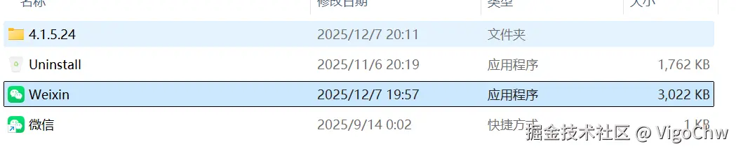 如下,在window的安装后的微信应用程序: