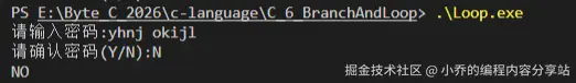 一个例子,当密码是连续的如abcdef,不会等待用户输入确认密码而是会直接打印NO