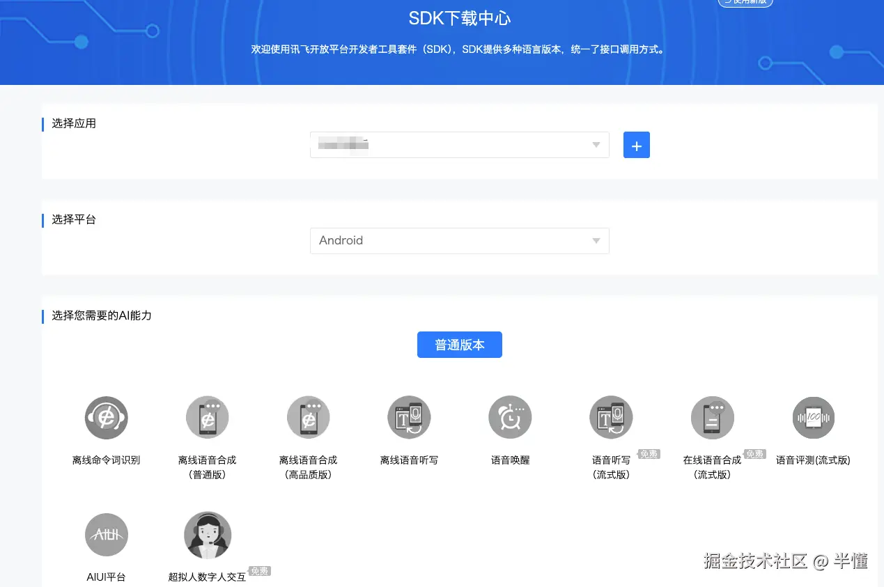 讯飞平台新版可能不直接提供 SO 文件下载,需要切换回旧版平台才能找到下载入口。