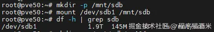 成功样例:/dev/sdb1 1.8T 200G 1.6T 12% /mnt/sdb