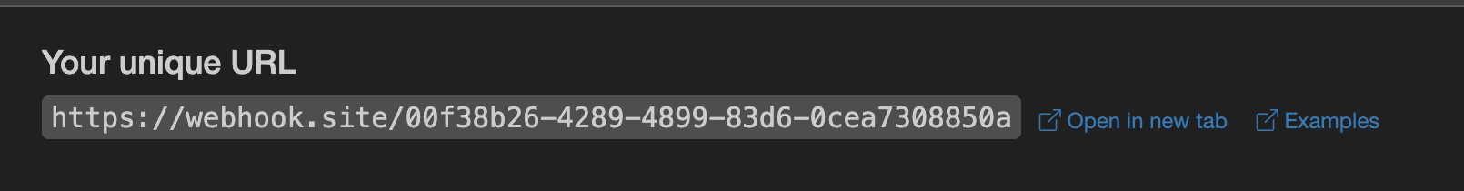 将此 URL 复制下来,就可以作为 Webhook 来使用,此处的样例为 https://webhook.site/00f38b26-4289-4899-83d6-0cea7308850a。