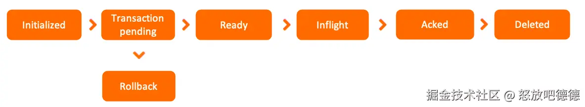 - 初始化:半事务消息被生产者构建并完成初始化,待发送到服务端的状态。