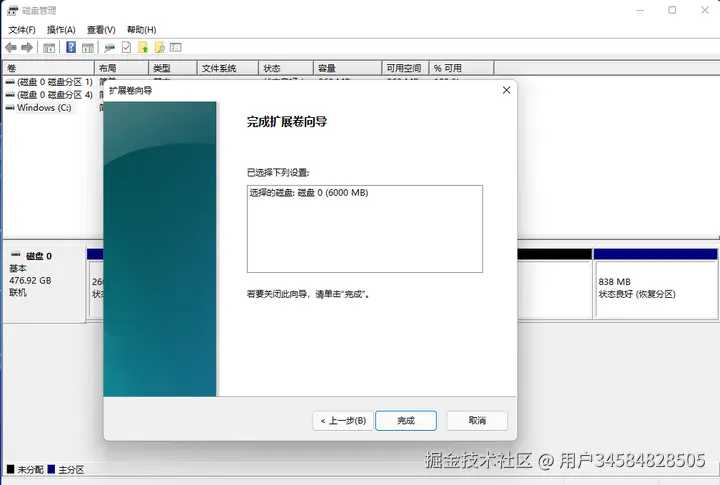Step3:点击C盘选择扩展卷,打开扩展卷向导,在选择空间量的地方,填入你想扩展的容量;