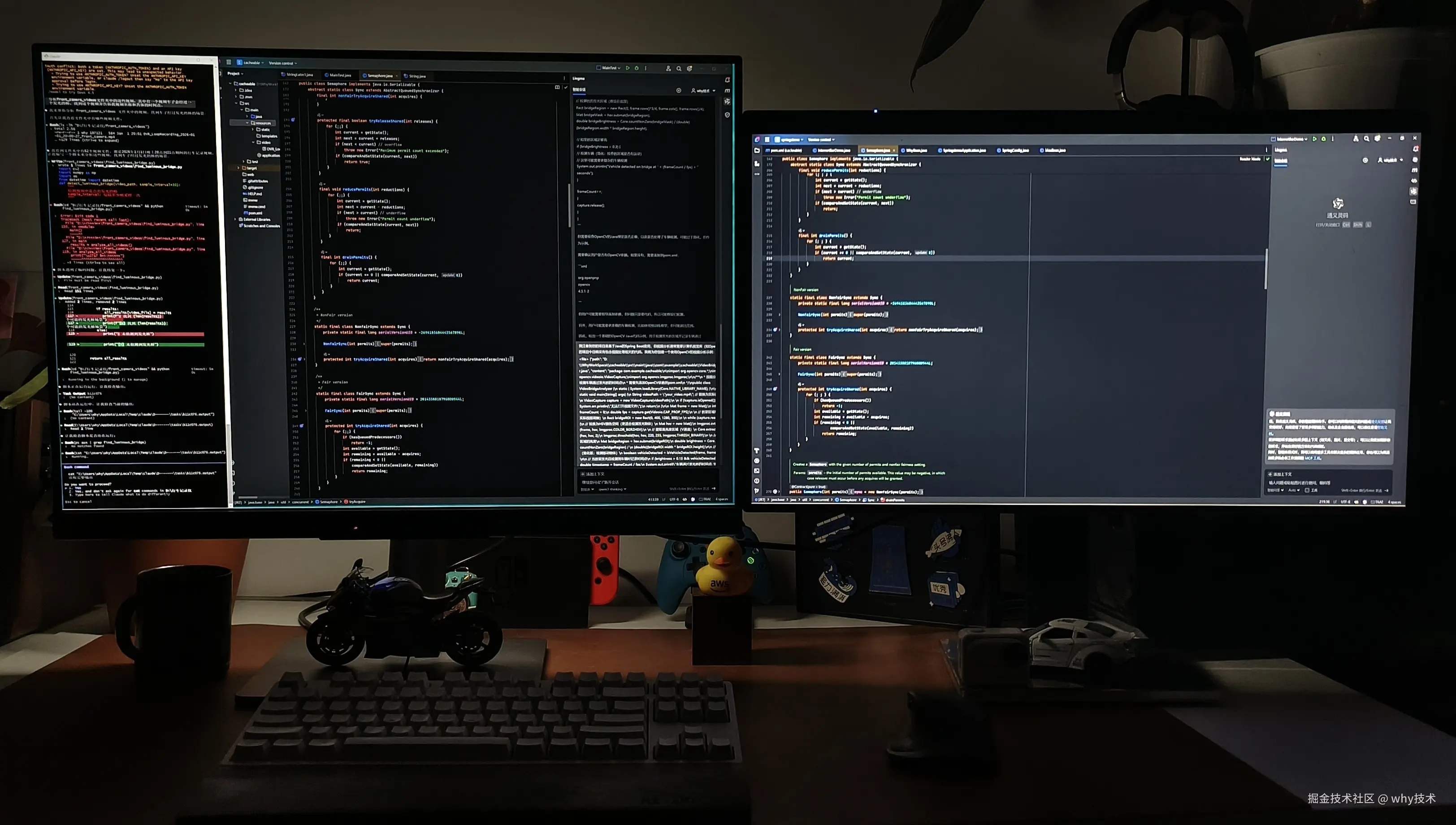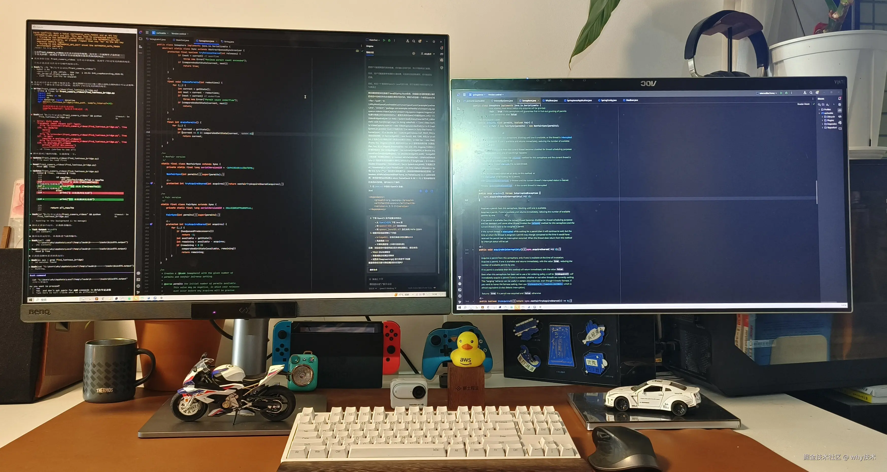 右边大部分桌面给到 IDEA 编辑器,偶尔古法手工编码。