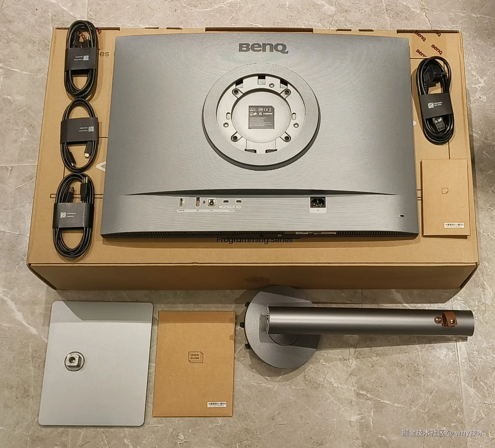 然后从打开箱子,到拿出各种配件,最后再到抱出显示器的整个过程,你都能感受到这个产品在感官上给人的质感是非常好的: