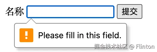 效果:如果你留空并点击提交按钮,浏览器会弹出一个提示框(气泡):“请填写此字段”。如果系统语言设置是英文就显示英文。