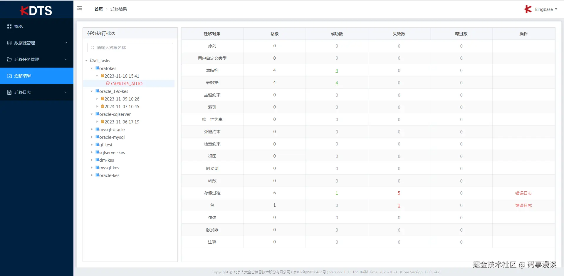 ,可以在运行日志(kdts_plus_***.log)中查看到迁移整个过程的信息,包括任务启动、迁移进程、结果汇总。