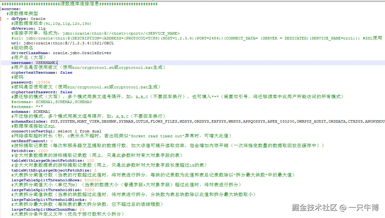 fetch-size:源库游标读取批次大小。write-batch-size:目标库批量提交数量。table-with-large-object-fetch-size:含 LOB 表的读取批次。large-table-split-threshold-rows/size:大表拆分阈值。readDataTimeout、maxRetries:读超时与重试策略。maximumPoolSize:源端连接池上限。