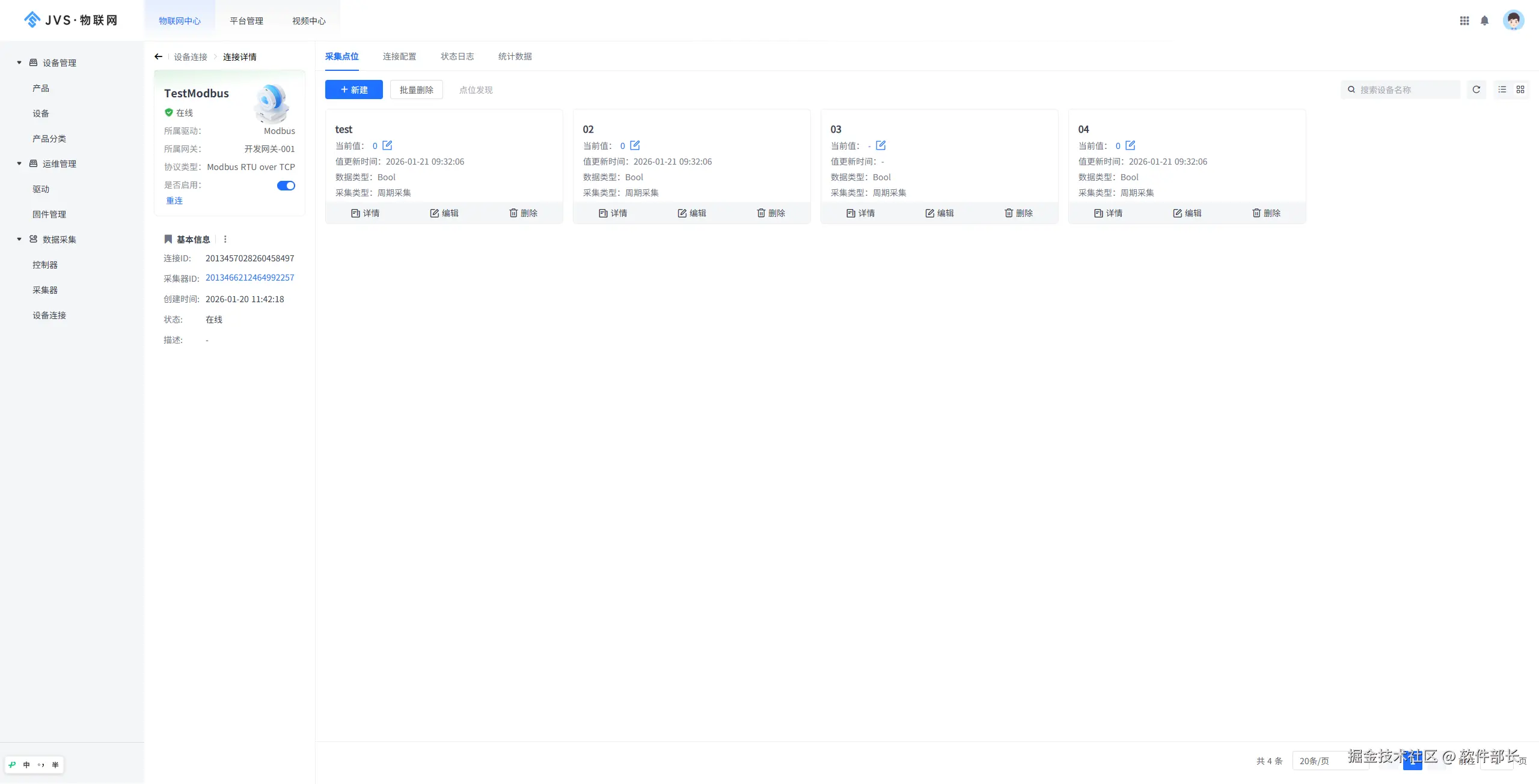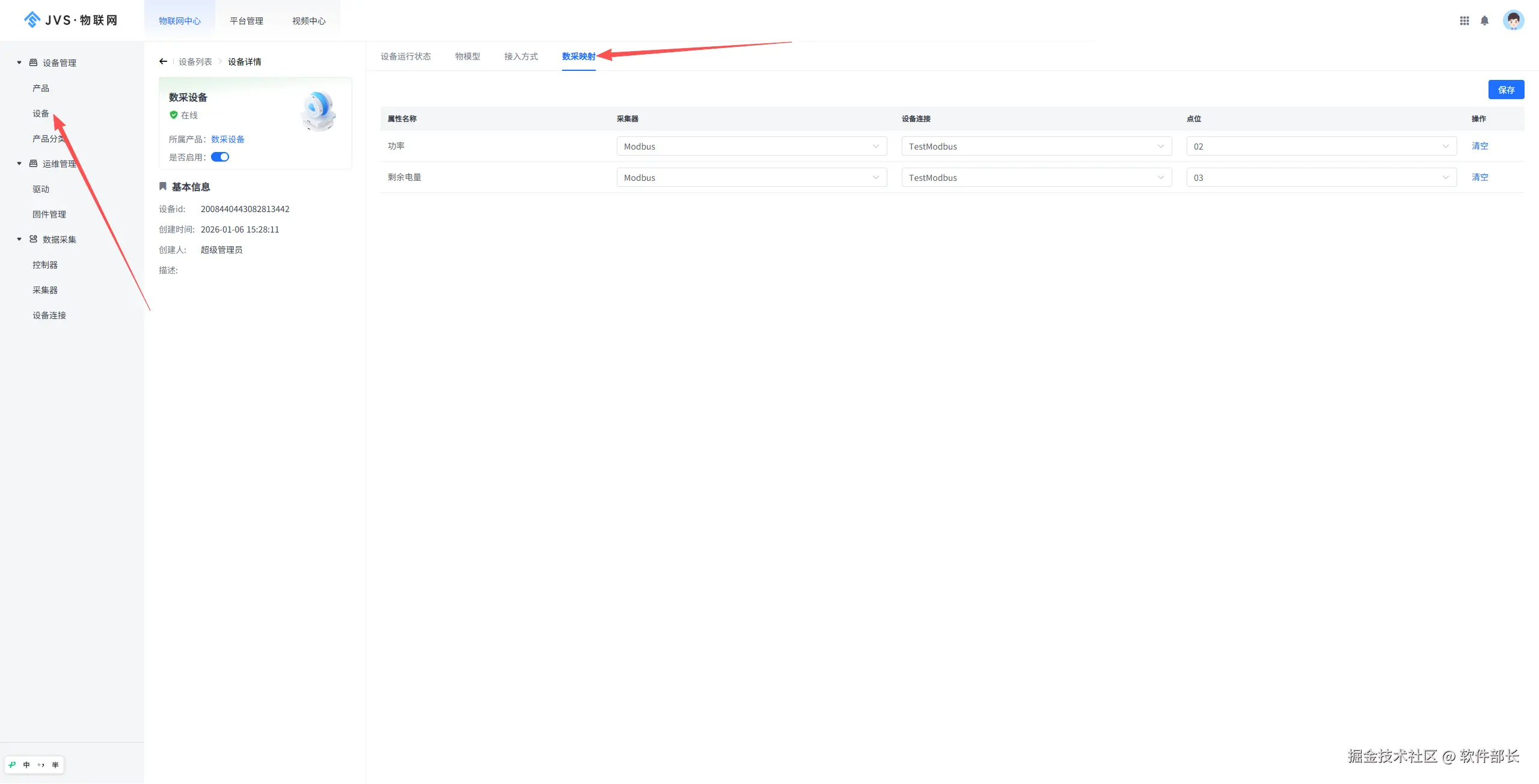 3、当接入方式为“数据采集”时,配置设备数据映射现已支持按采集器、设备连接及点位进行逐级选择。