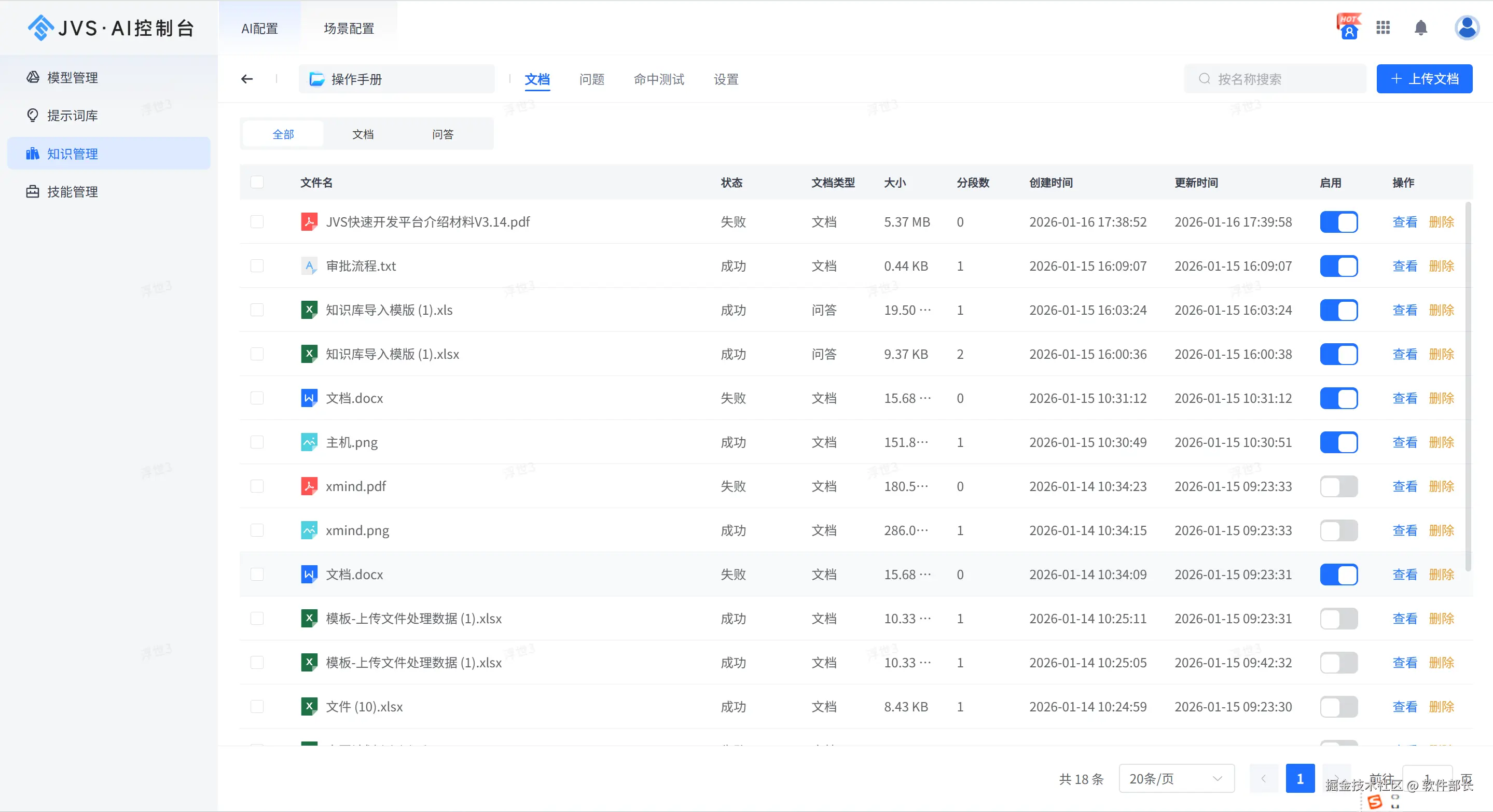 1、重构知识管理的功能,通用文库文档的导入与相关管理操作,如下图所示: