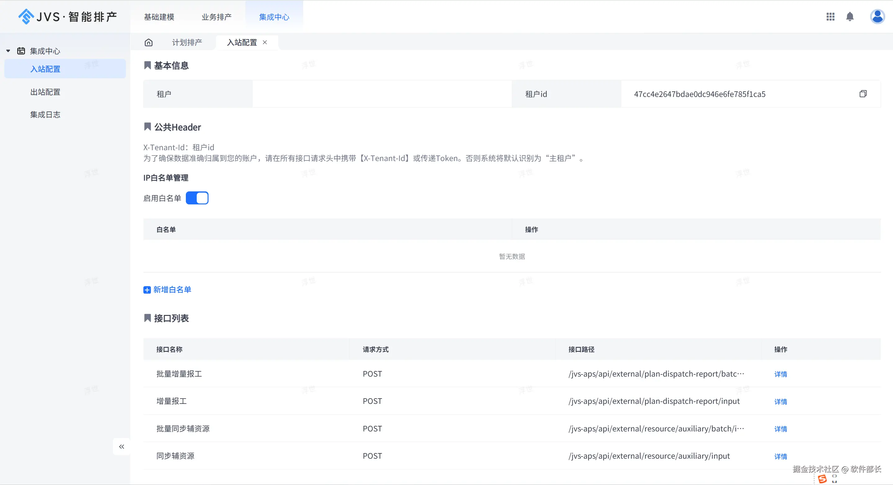 其中所有的接口配置均为租户级,也就是同一套APS 可以不同租户进行分别隔离使用。并且提供了详细的API查看的详情: