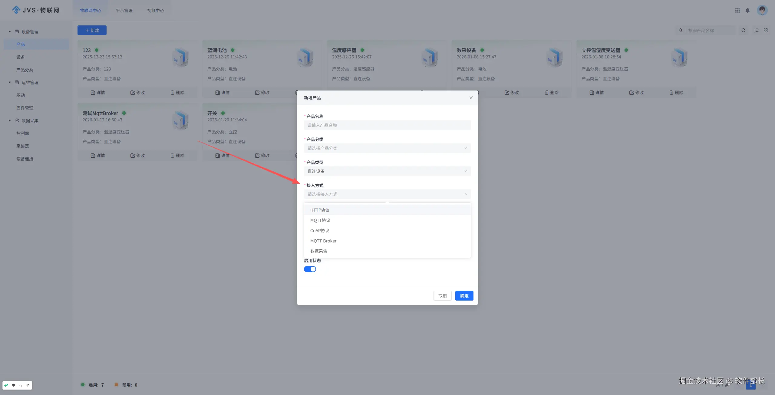 2、接入协议库大升级,设备互联更从容。在创建新产品时提供了更丰富的协议选择。现在可以灵活选用如 HTTP、MQTT、CoAP、MQTT broker等协议,极大提升了设备接入的灵活性与未来适应性。