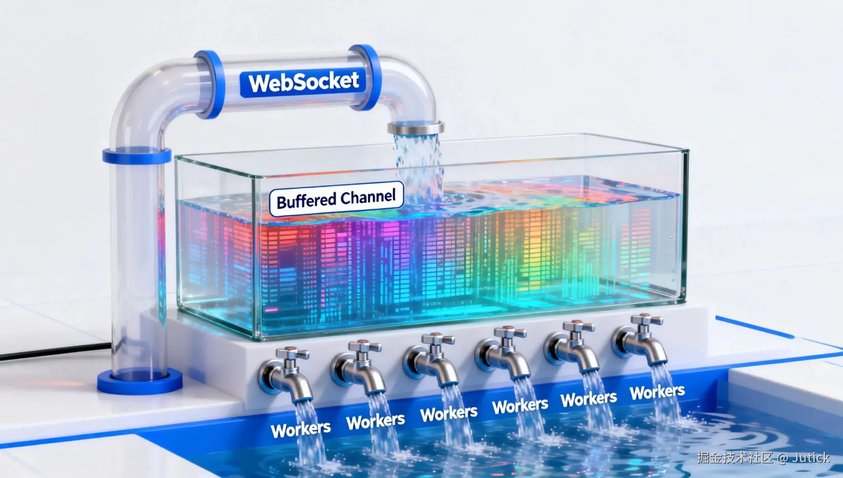[]byte。 - Ring Buffer:使用带缓冲的 Channel 作为蓄水池,应对流量刺。