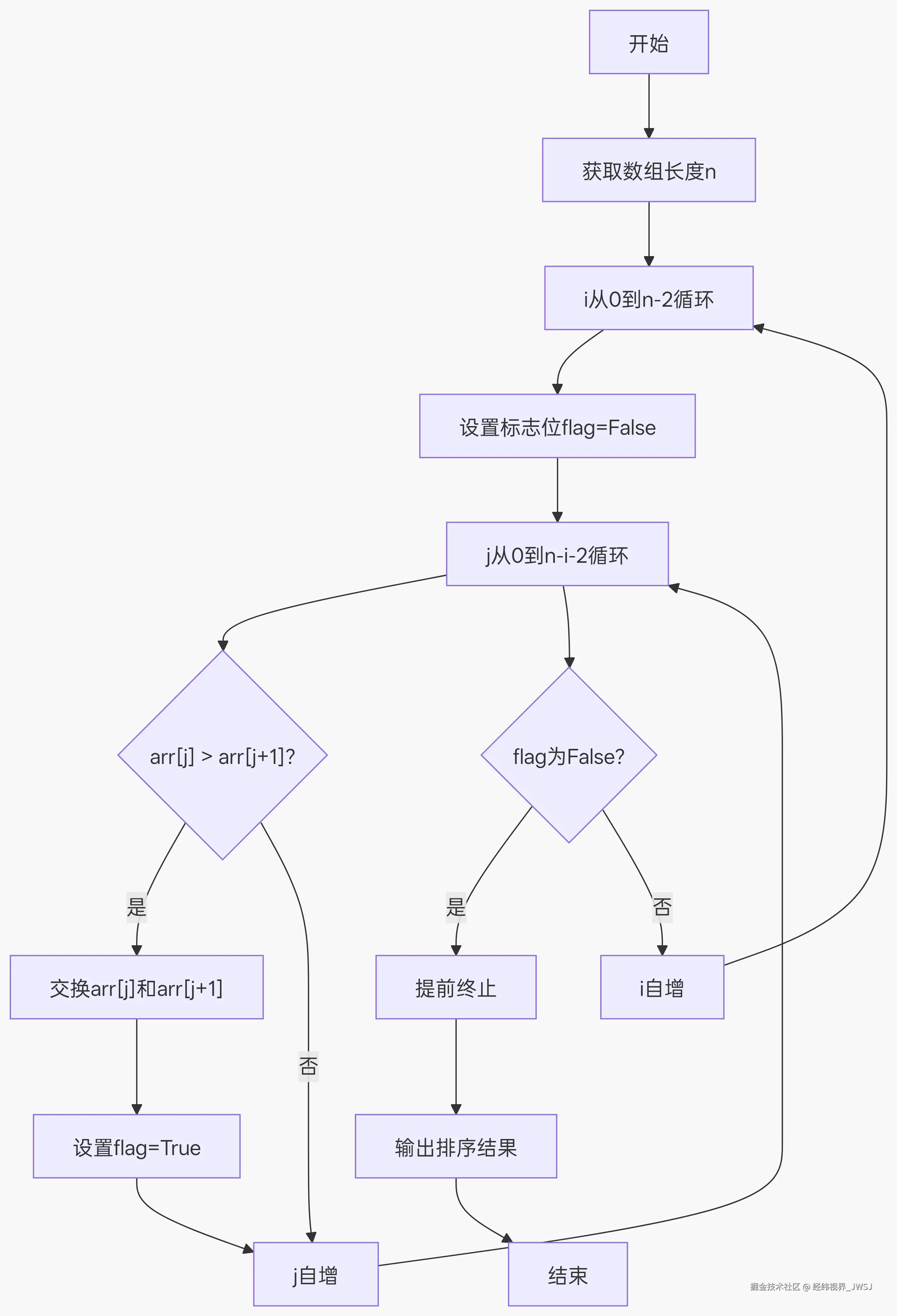 # 如果在一次遍历中没有发生交换,说明数组已经有序,直接跳出循环
