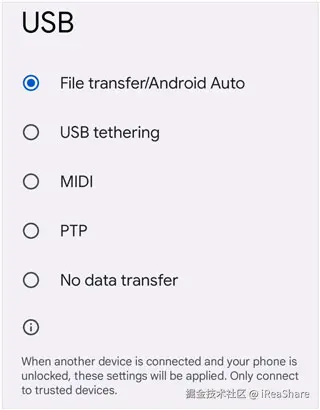 步骤 1: 使用 USB 数据线将 Android 手机连接到电脑。手机上可能会显示一条关于 USB 连接的通知。点击该通知,然后选择“文件传输/Android Auto ”。