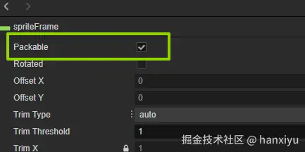 作用:SpriteFrame 的 Trim(裁剪) 功能会自动识别图片中的有效像素,把四周多余的透明部分“剪掉”,只把有颜色的部分传给显卡。