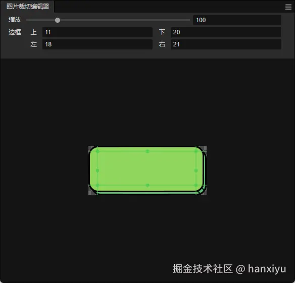 结果:它保证图片的四个角不被拉伸,只拉伸中间平整的部分。无论你的按钮多长多高,圆角永远是完美的。