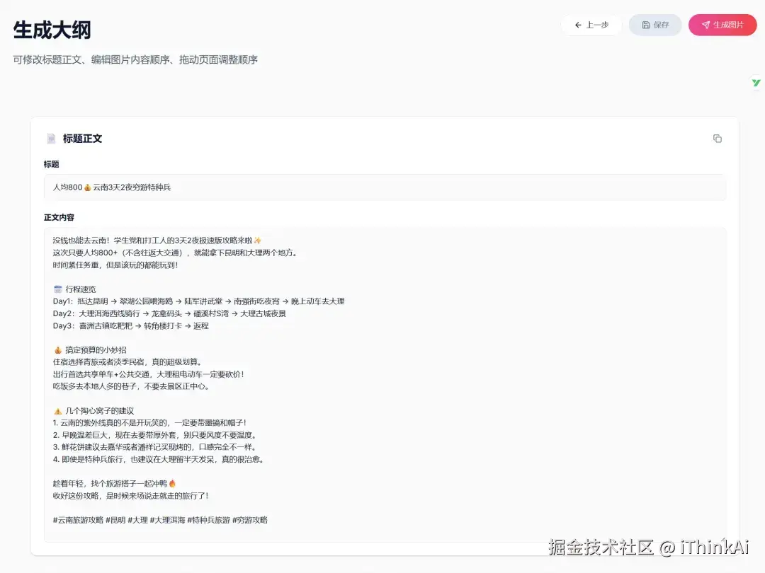 无论是“旅游私域引流”还是“产品种草图文”,只需输入一个核心指令,系统就会自动调取 2026 年最新的搜索热词和行业模型。