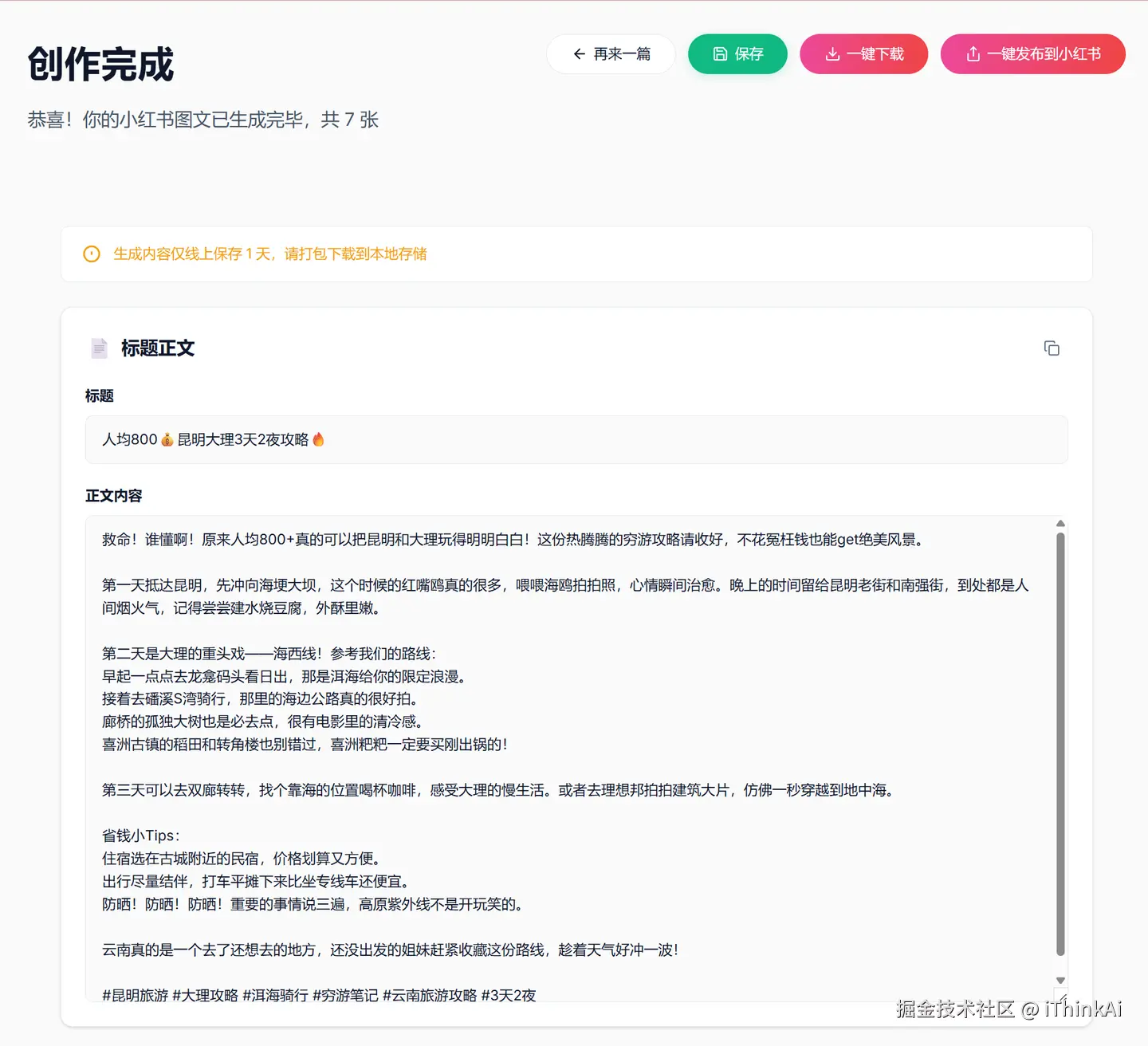 第二步:智能生成高点击率文案(标题、正文)、每张图图片描述