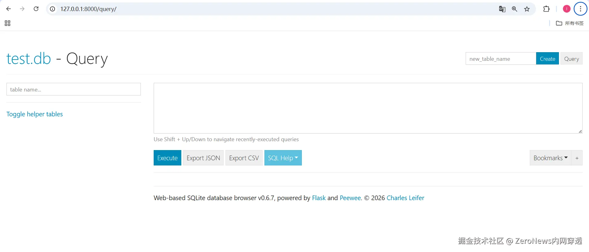 5. 运行以下命令启动 sqlite-web 服务。