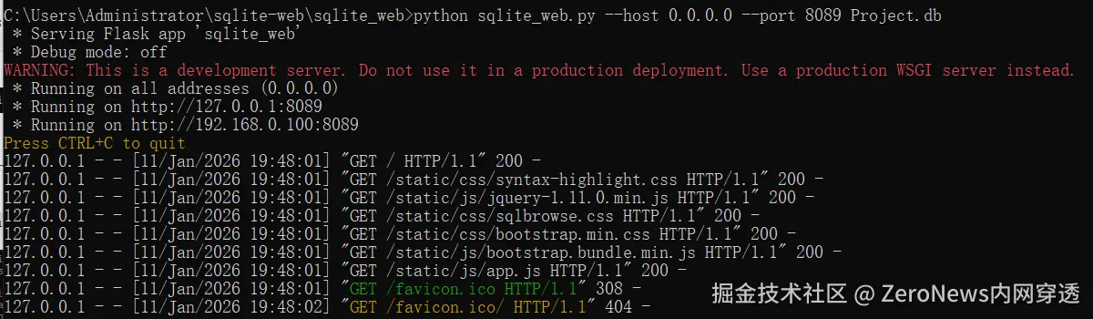 三、 公网访问您的SQLITE-WEB服务