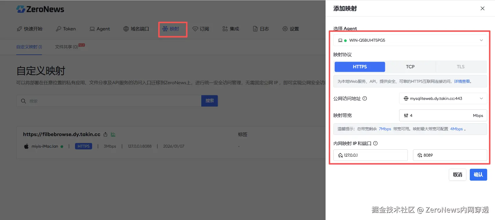 二、 创建 ZeroNews 映射服务