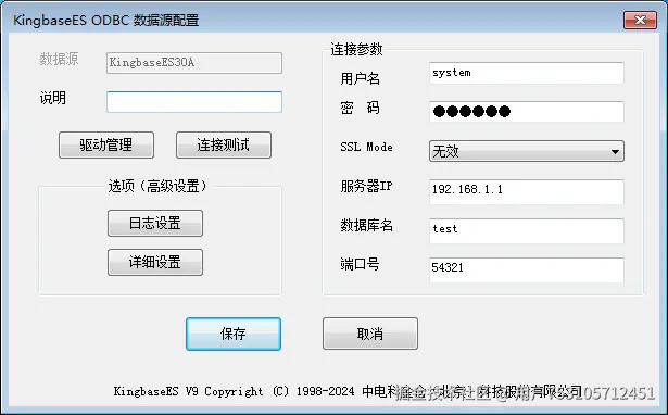 具体配置参数解释请参考 KingbaseES客户端编程接口指南-ODBC 。