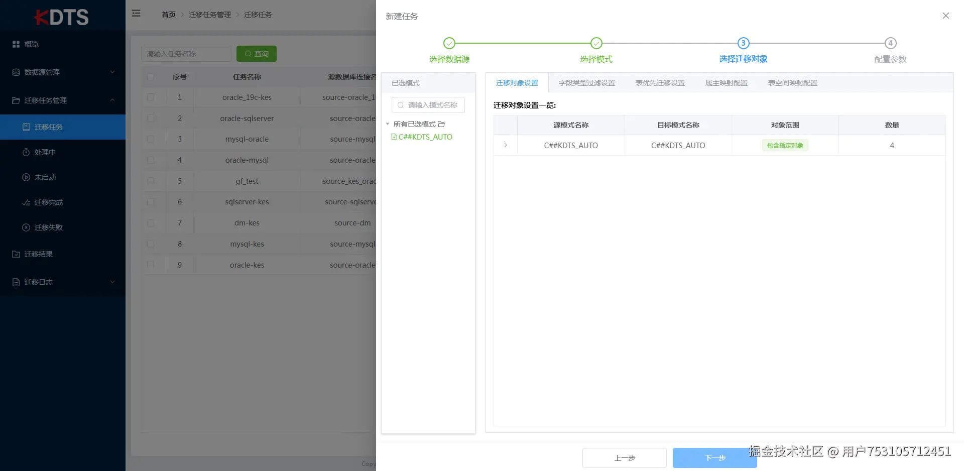 1)对于定义发生变更的表,选择迁移定义和数据。可使用 KDTS的“迁移部分表”功能完成,详细步骤可参考 迁移工具 。