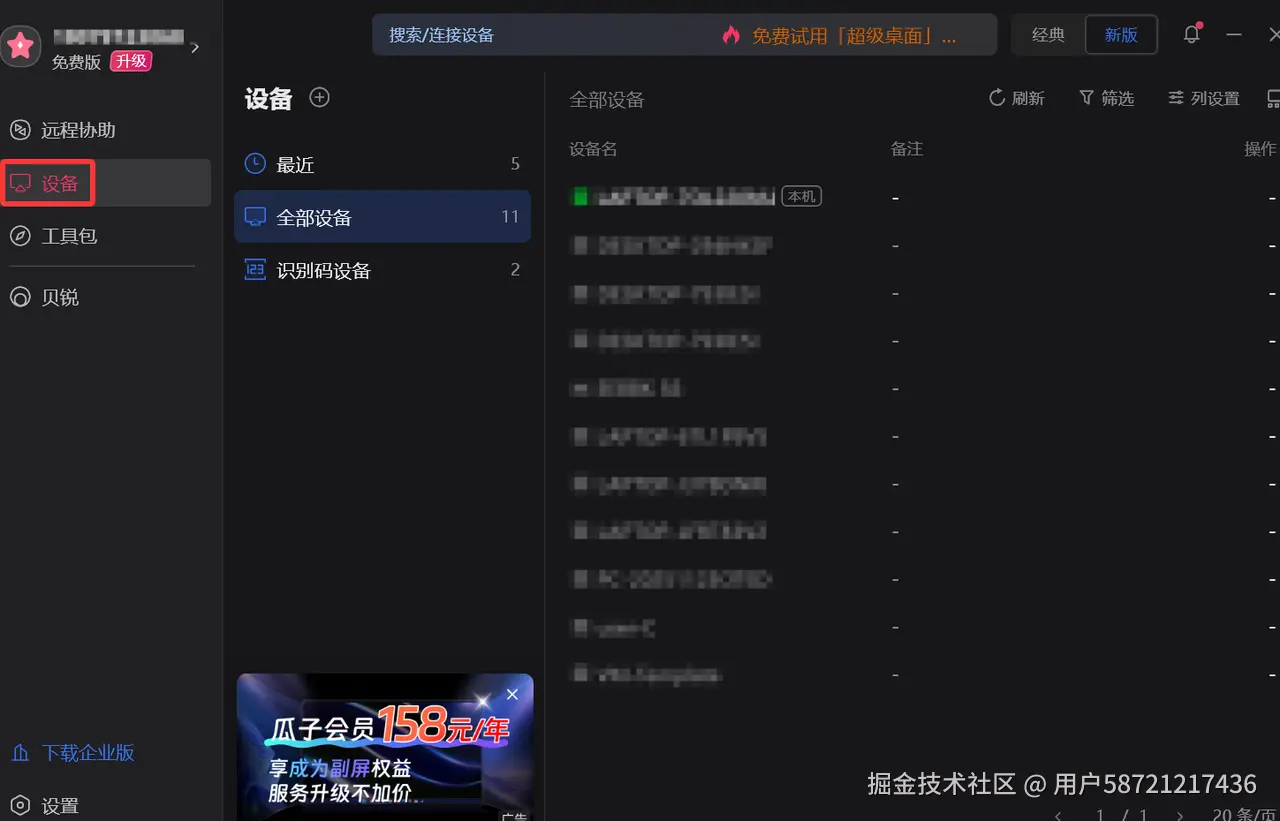 向日葵 ⭐️⭐️⭐️⭐️界面传统、操作简单,设备管理和工具包功能对企业运维较为实用,但高负荷使用下性能和画质调节有限,大部分高级功能需要付费,对于普通用户而言实用性略低。
