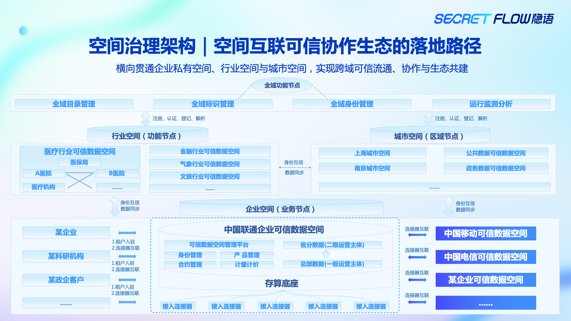 - 通过统一的身份、标识与治理规则,先解决“谁能参与、如何建立信任”的基础问题;