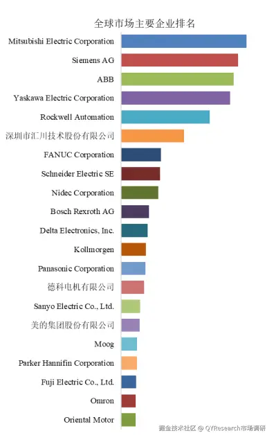 根据QYResearch头部企业研究中心调研,全球范围内伺服系统生产商主要包括Mitsubishi Electric Corporation、Siemens AG、ABB、Yaskawa Electric Corporation、Rockwell Automation、深圳市汇川技术股份有限公司、FANUC Corporation、Schneider Electric SE、Nidec Corporation、Nidec Corporation等。2024年,全球前十强厂商占有大约53.2%的市场份额。
