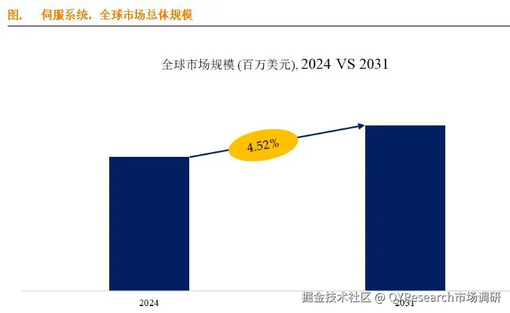 据QYResearch调研团队最新报告“全球伺服系统市场报告2025-2031”显示,预计2031年全球伺服系统市场规模将达到190.7亿美元,未来几年年复合增长率CAGR为4.5%。