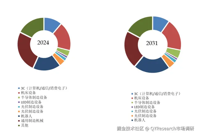 就产品应用而言,目前通用制造机械是最主要的需求来源,占据大约25.66%的份额。