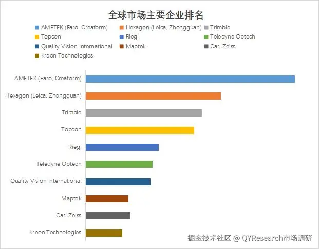 根据QYResearch头部企业研究中心调研,全球范围内三维激光扫描仪生产商主要包括AMETEK (Faro, Creaform)、Hexagon (Leica, Zhongguan)、Trimble、Topcon、Riegl、Teledyne Optech、Quality Vision International、Maptek、Carl Zeiss、Kreon Technologies等。2025年,全球前五大厂商占有大约57.0%的市场份额。