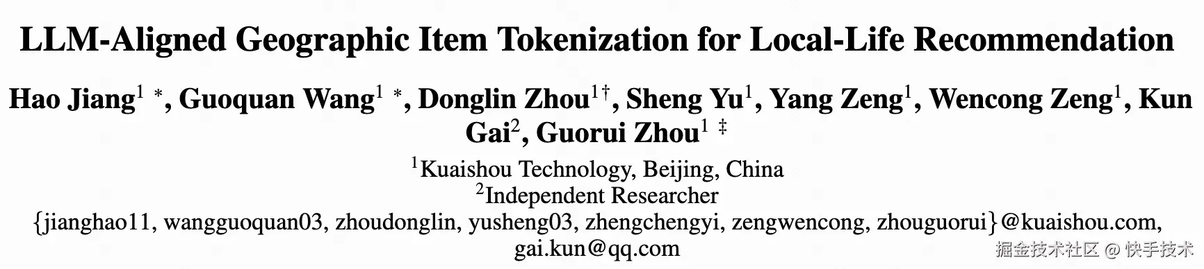 本研究相关成果《LLM-Aligned Geographic Item Tokenization for Local-Life Recommendation》已被人工智能顶级会议 AAAI 2026 接收,同时 LGSID 已在快手生活服务场景全量上线,助力业务累计实现 GMV 和订单 10%以上的增长。