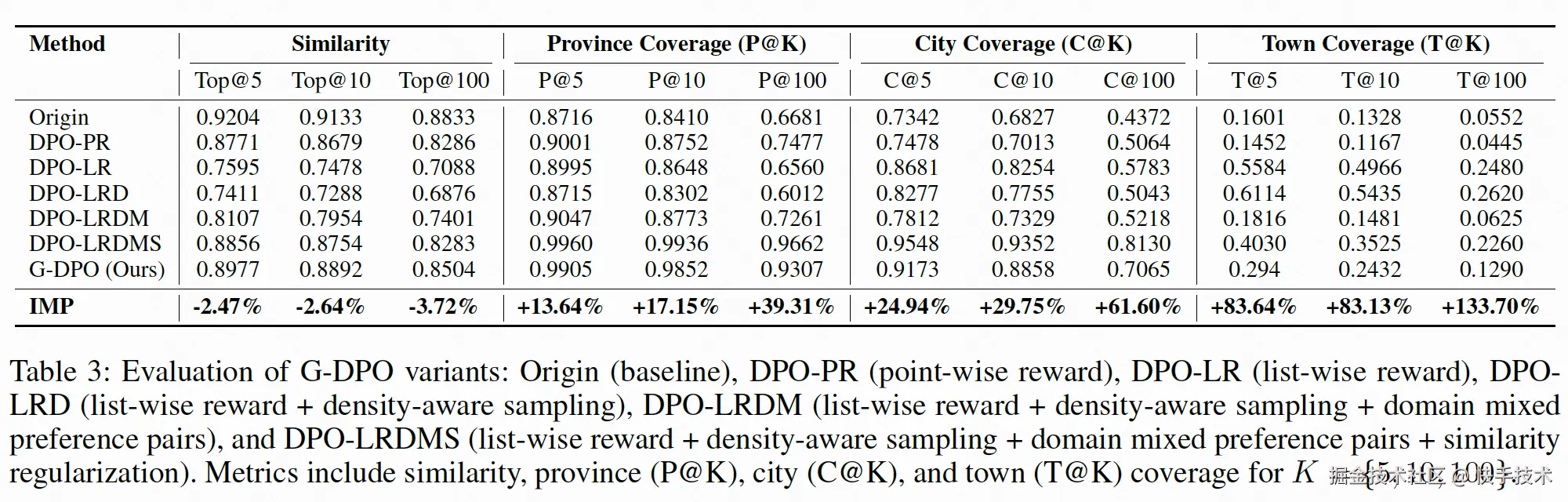 【教会 LLM 如何学习地理位置信息】针对预训练 LLM 地理感知能力弱的问题,本文创新性地提出 G-DPO 算法,通过 LLM Post-Training 过程,将 Item 在真实世界中的相对空间关系显式注入 LLM 底层,从而引导模型更有效地学习地理位置信息,并平衡好内容语义与地理语义。