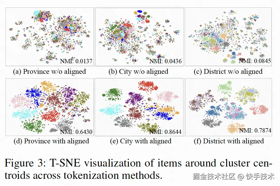 左图的 T-SNE 可视化结果表明,我们对经 G-DPO 对齐后的 LLM 表征进行降维后,省份、城市与区县各层级的聚类中心在嵌入空间中呈现出收敛趋势。与此同时,NMI 指标由 0.0137–0.0845 大幅提升至 0.6430–0.8644,表明模型学习到的聚类结构与真实地理标签之间的一致性显著增强。