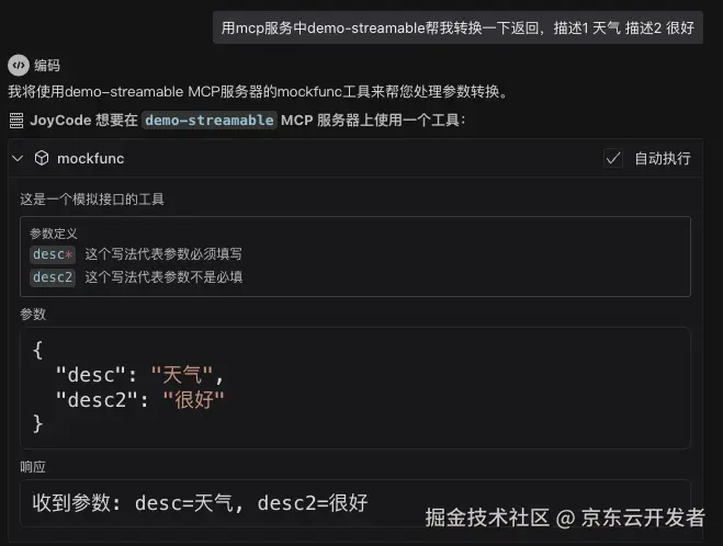 2.streamableHttp - joycode成功联通并且可以运行
